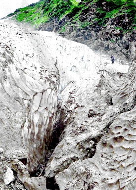 白馬大雪渓長さ100b深き15bのクレバス | |||||||